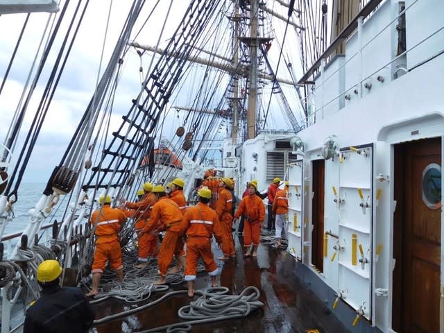 下関港で実施予定のセイルドリルは、現在乗船する実習生にとって最後の操帆訓練となります。