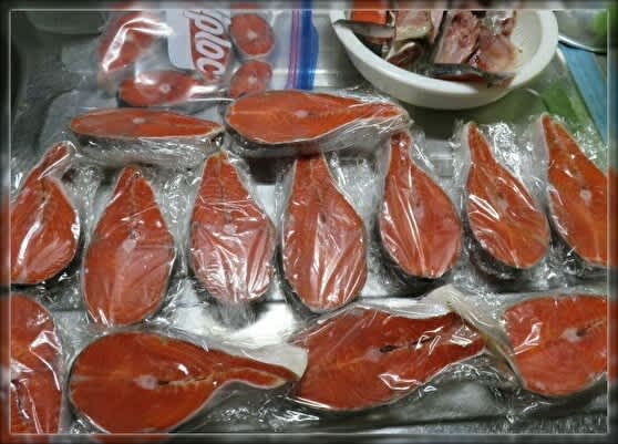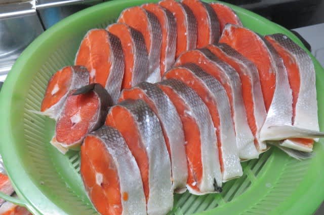 じいらに鮭を切ってもらいました。