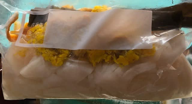 秋にいただいて冷凍しておいた菊の花も入れました。