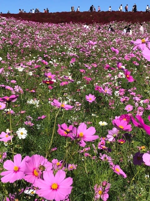 コキアは見ごろ後半、コスモスは満開でした。