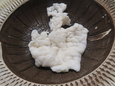 すりおろしたけどきれいに解けないので、結局カッターで!フードプロセッサーがなくて。二回こしました。