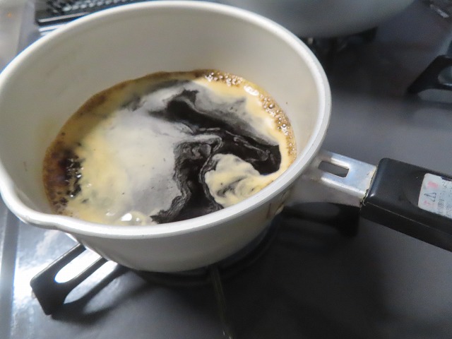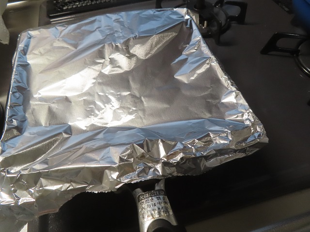 アルミホイルに2重に包んでふき取ったフライパンの上に放置(^▽^;)