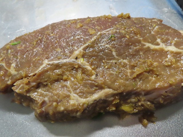 調味液(おろしにんにく おろし生姜 に漬けこんで冷凍しておきました。