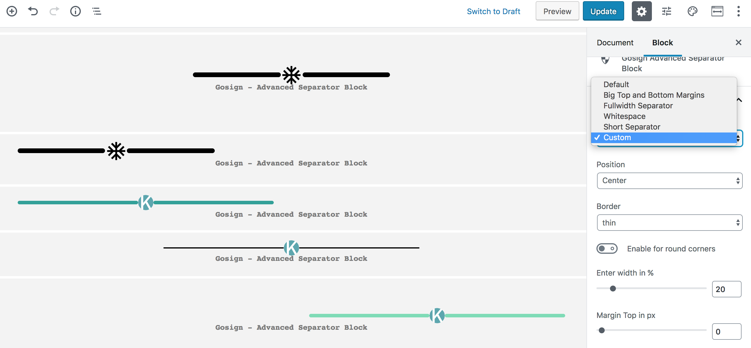 - Gosign – Advanced Separator Block