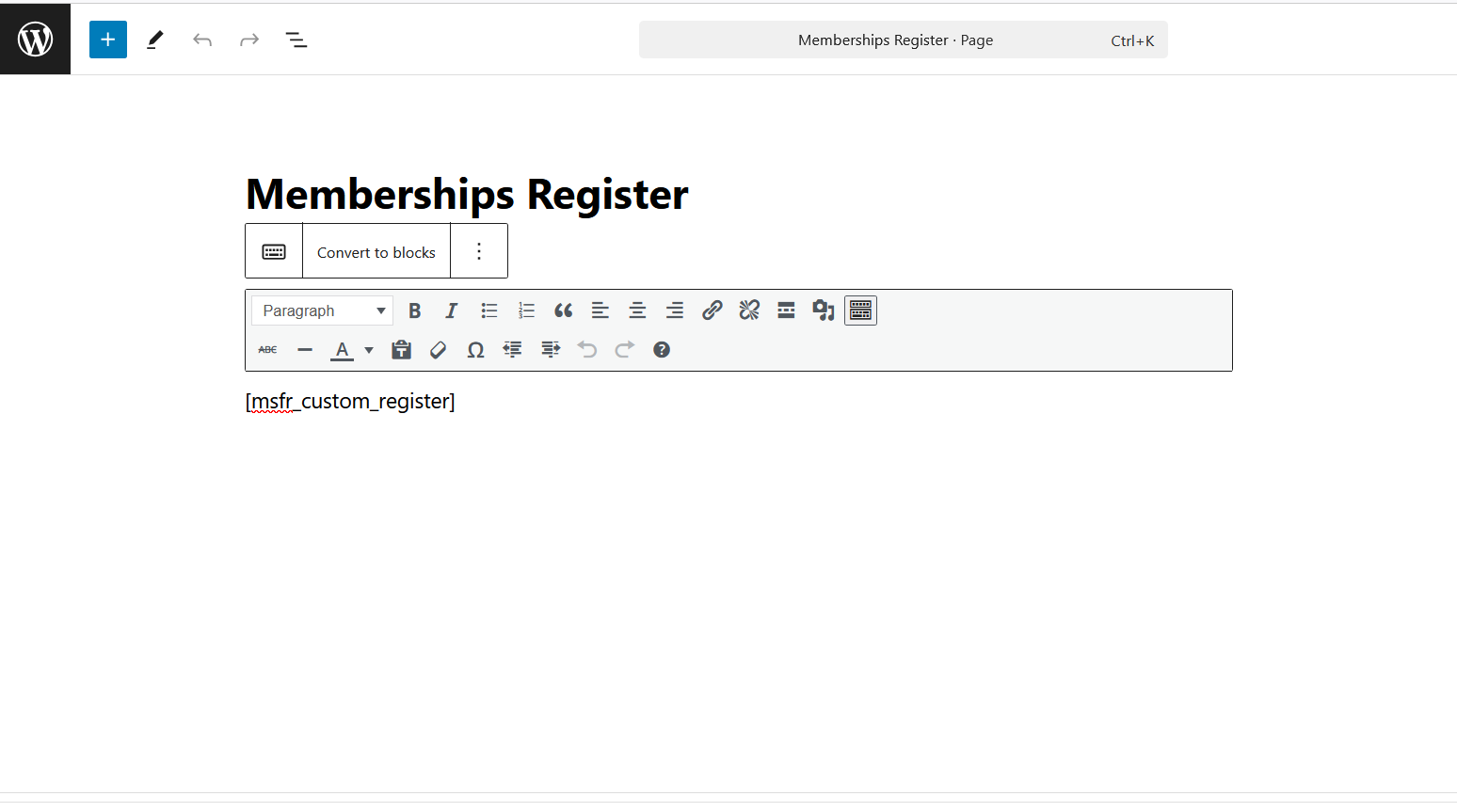 [msfr_custom_register]on any page or post where you want to display the registration form. -