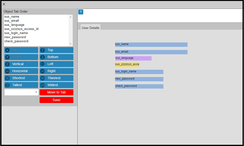 - Cursor Starts on the first Object of the first Tab.