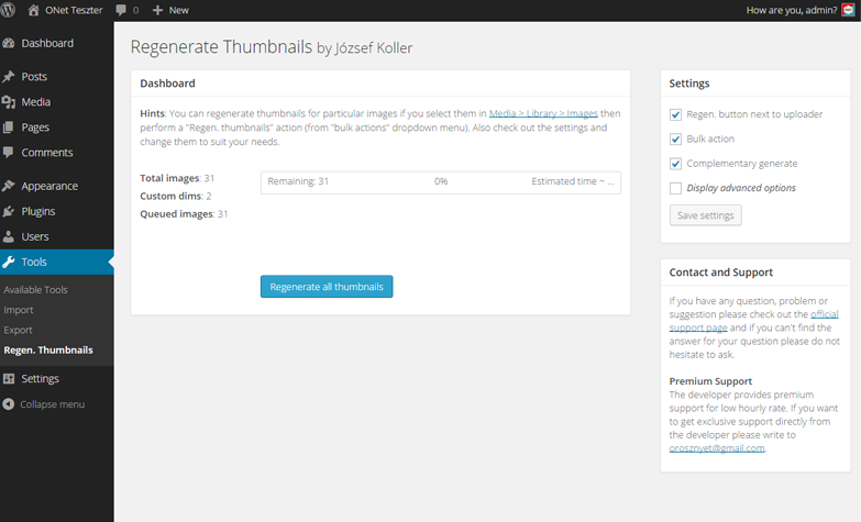 - Install ONet Regenerate Thumbnails either via the WordPress.org plugin directory, or by uploading the files to your server