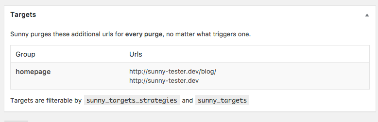 Strategiesandsunny_post_related_urls. See examples on Sunny Purge Extra URLs Example.If you don’t understand the example code, hire me instead.