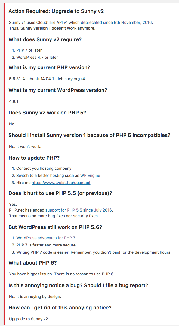 - Should I install Sunny version 1 because of PHP 5 incompatibles?