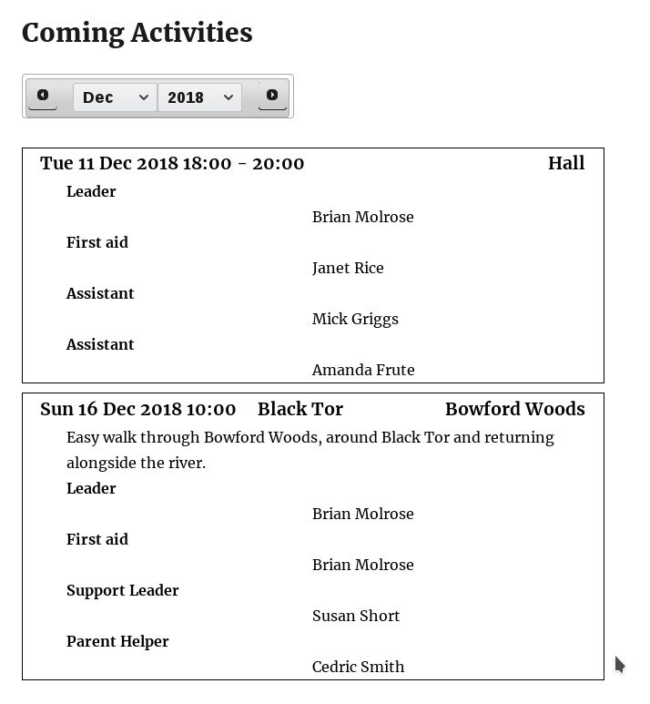 The set of shortcodes all work together in groups to enable multiple, independent schedules to be defined, each with their own people, roles, events.