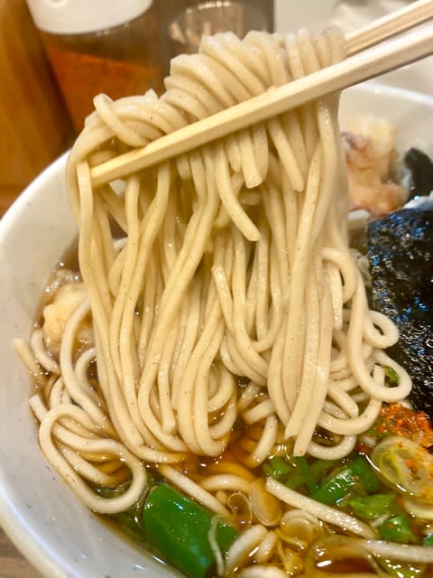 立ち食い蕎麦 酒処 稜(綾瀬)かけそば+スルメイカゲソ天+海苔天