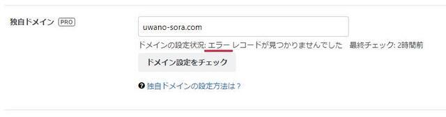 こちらも設定が反映されるまである程度の時間が掛かります。設定した直後は「ドメインの設定状況」にエラーが表示され、オリジナルのURLに戻ってしまいますが、DNSの設定を間違えていなければ、反映されるのを待つしかありません。