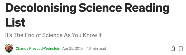 Although not specifically related to space ethics but to the wider question of ethics and anti-colonial work in science as a whole, we would like to draw your attention to the Decolonising Science Reading List, which is created and maintained by Professor Chanda Prescod-Weinstein. The list served as an inspiration for the creation of this website.