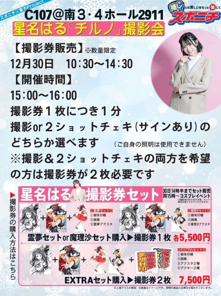 星名はるさん撮影券セット(2種類)は、30日14時30分までの販売で、数量限定となります。