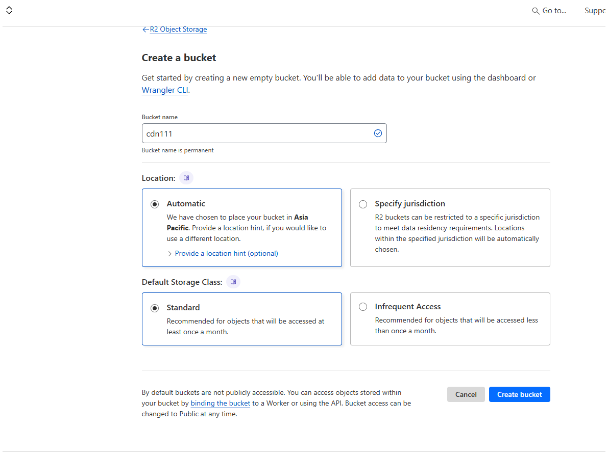 Step 1: Create R2 bucket in Cloudflare dashboard