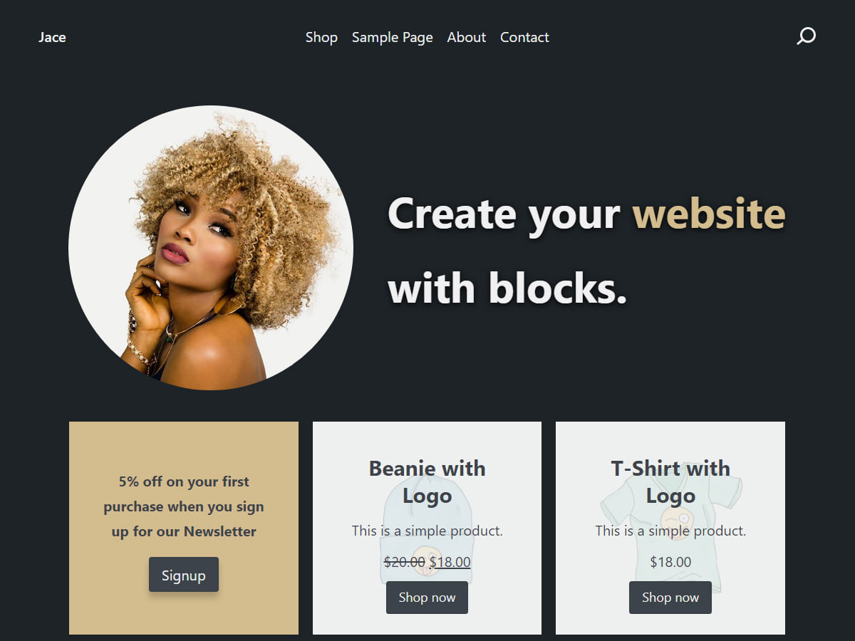 The main purpose of this theme is to showcase the features of full site editing. You can use the theme for blogging, for your portfolio, business, or store. To use the e-commerce features, you need to install both WooCommerce and WooCommerce blocks. It is also recommended to install Gutenberg and Contact Form 7. The theme has over 60 patterns + all patterns from the WordPress pattern directory. Jace includes an optional light color scheme, blog layouts, about pages, contact pages, sticky header, social sharing, full-screen headers, buttons and list styles.