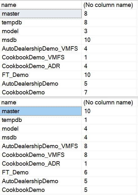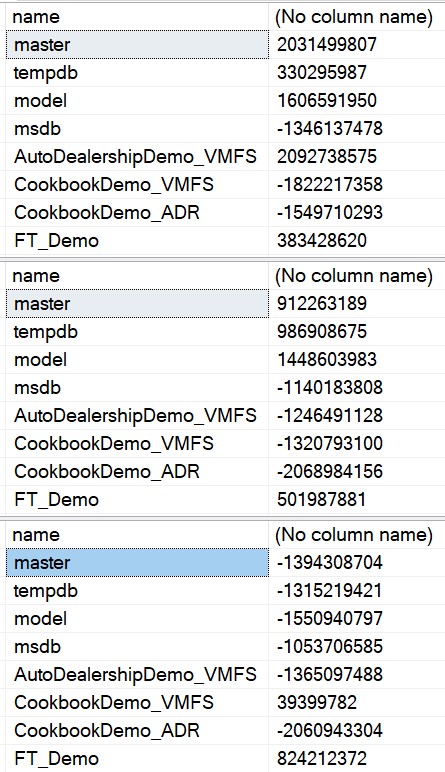 Notice that I added one additional function to the column definition – ABS(). That’s because as you can see in the prior examples, the raw output of CHECKSUM(NEWID()) will return both positive and negative integer values. So if I wanted only positive values between 1 and 10, using ABS() to get the absolute value is a clean solution.