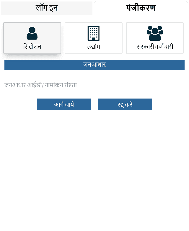 - सूची से, “Citizen” चुनें और अपने लिए सबसे अच्छा विकल्प चुनें। यह जन आधार, भामाशाह, या आपका Google खाता हो सकता है।
