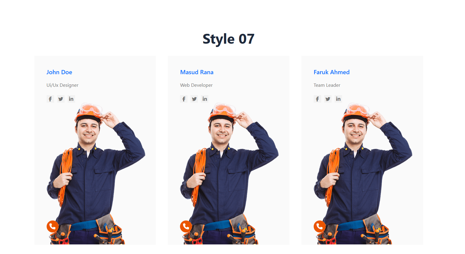 Example of team member display with social media links