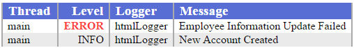 Some of the most commonly used layouts are PatternLayout, HTMLLayout and XMLLayout – let’s have a quick look at these in practice.