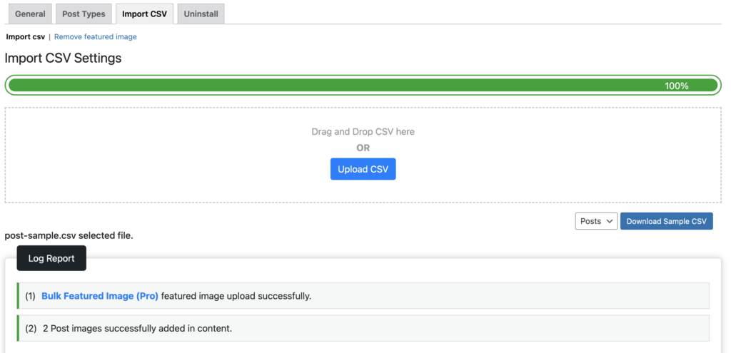 - Upon simply uploading the CSV in this section, one can get the featured image uploaded for all selected posts.
