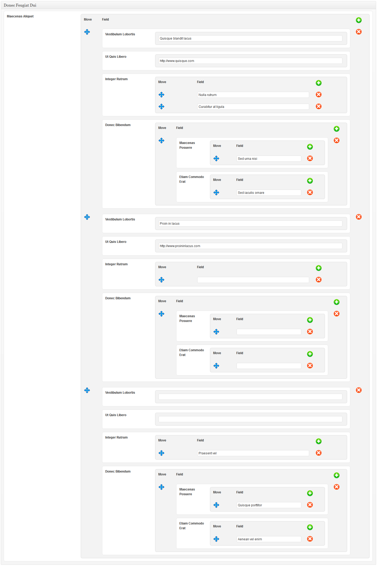 • Group – A group of fields. You can also create a group within a group, i.e. a nested group! Groups can be nested to an infinite level, at least in theory.