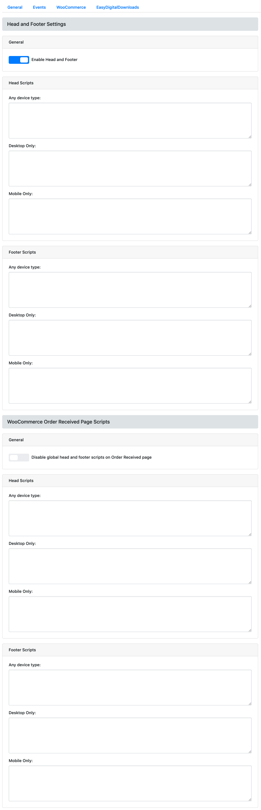 Easily integrate Meta Pixel with full Conversion API support, Google Analytics 4, and Google Tag Manager into your WordPress site. Plus, use our simple Head and Footer script option to add any custom script you need for advanced tracking and optimization. The Pinterest Tag can be implemented via this paid add-on. Similar paid add-ons for the Bing tag and for the Reddit Pixel.