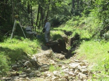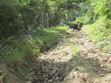 工事前の測量をしているおじさんの話では「最低で年末は無理だね。 それに、この先も崩れているし」とのこと。