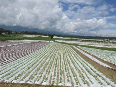 それでも、清里を過ぎ野辺山まで来ると 夏の高原雰囲気に。 そして、目印のビニールハウスがある交差点を右折すると林道へは 一本道。