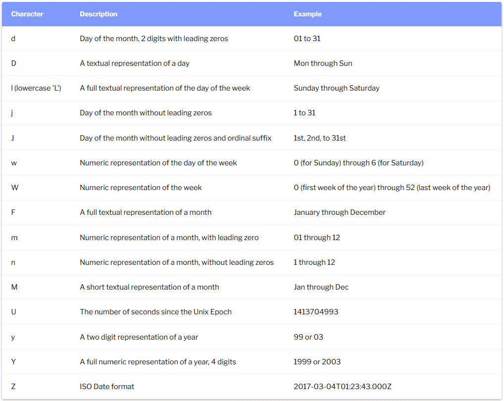 Date Formatting Tokens:
