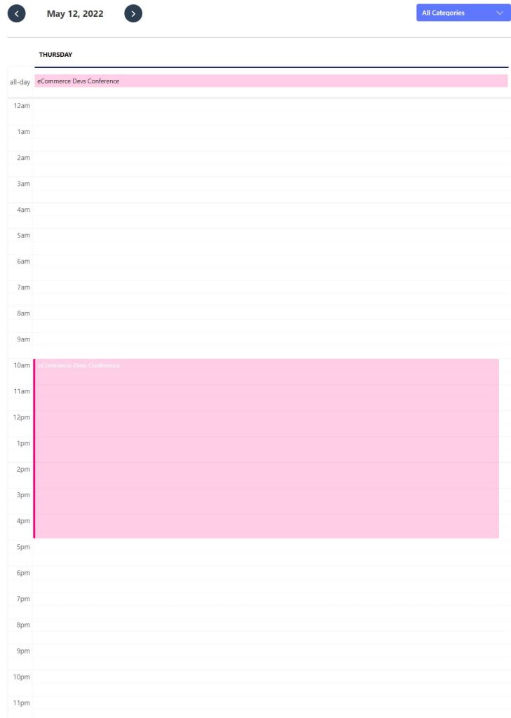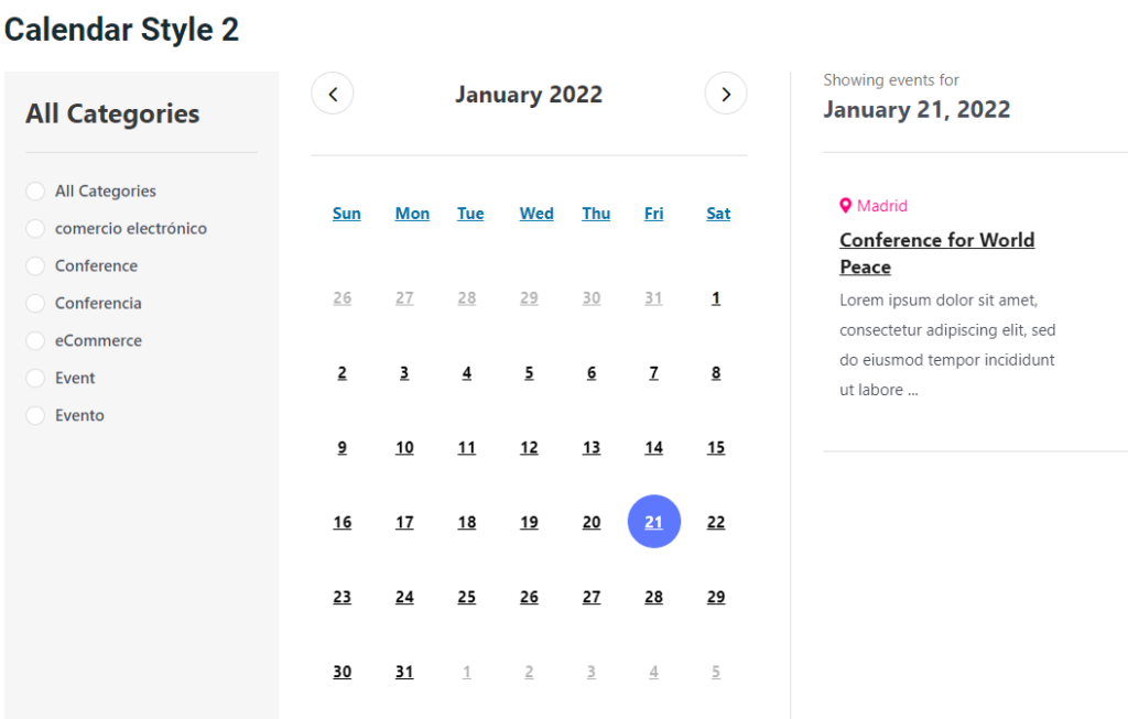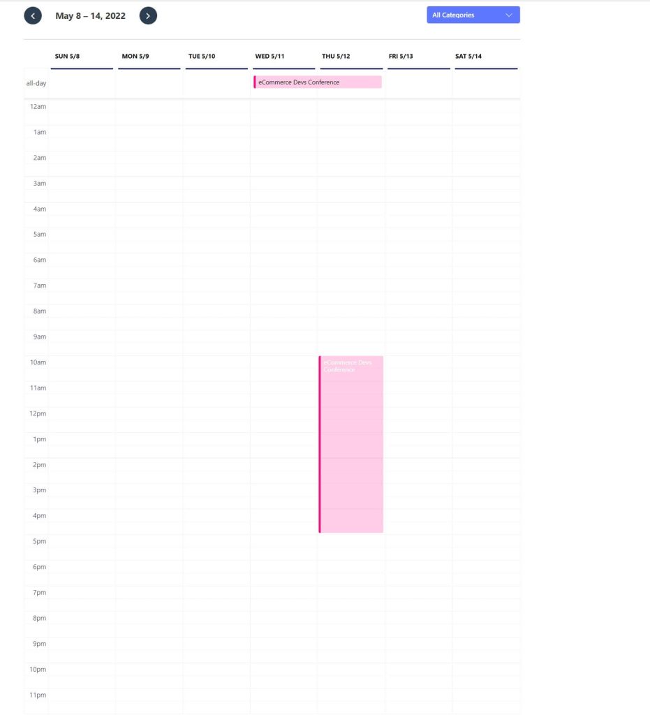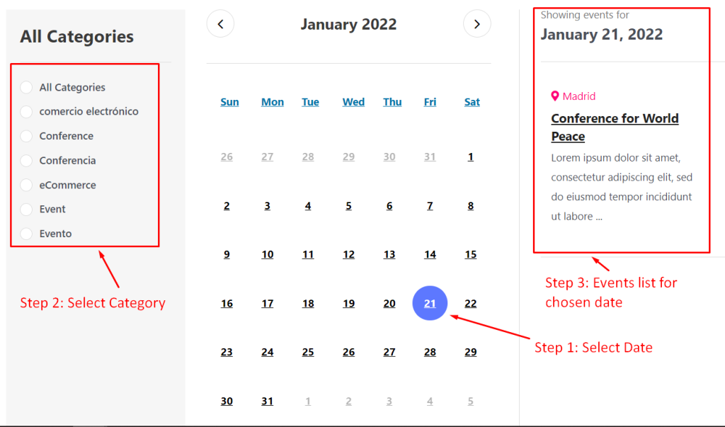- Select Category – Choose the category of events you want to show on the calendar.