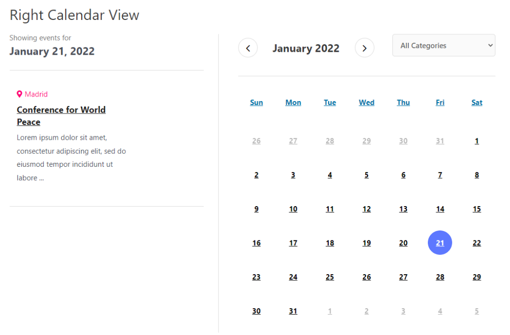 You can choose 3 different layouts for your calendar which are Left, Right and Full-width.