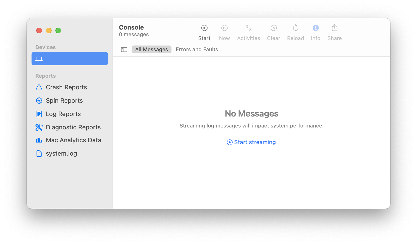 In the search field, type “Console.app” and press Enter.