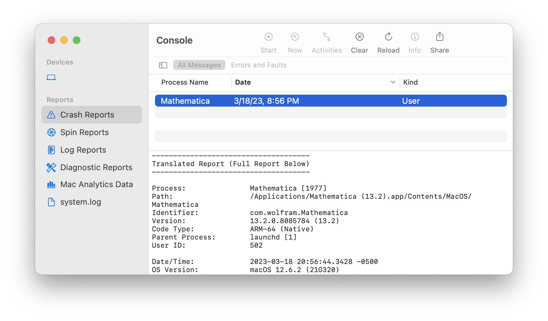 If the front end of your Wolfram product quits unexpectedly, generate a crash report: