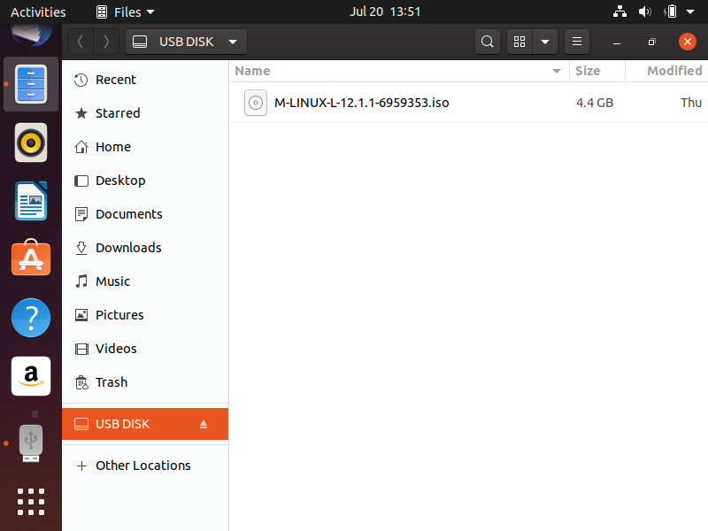 Auf den meisten Linux-Plattformen hängt das Betriebssystem das USB-Laufwerk automatisch ein. Sie können dann die ISO-Datei in einer GUI-Umgebung einhängen.