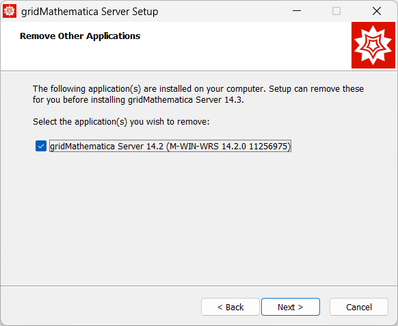 A janela “Remove Other Applications” será exibida se outras versões do gridMathematica Server estão instaladas.