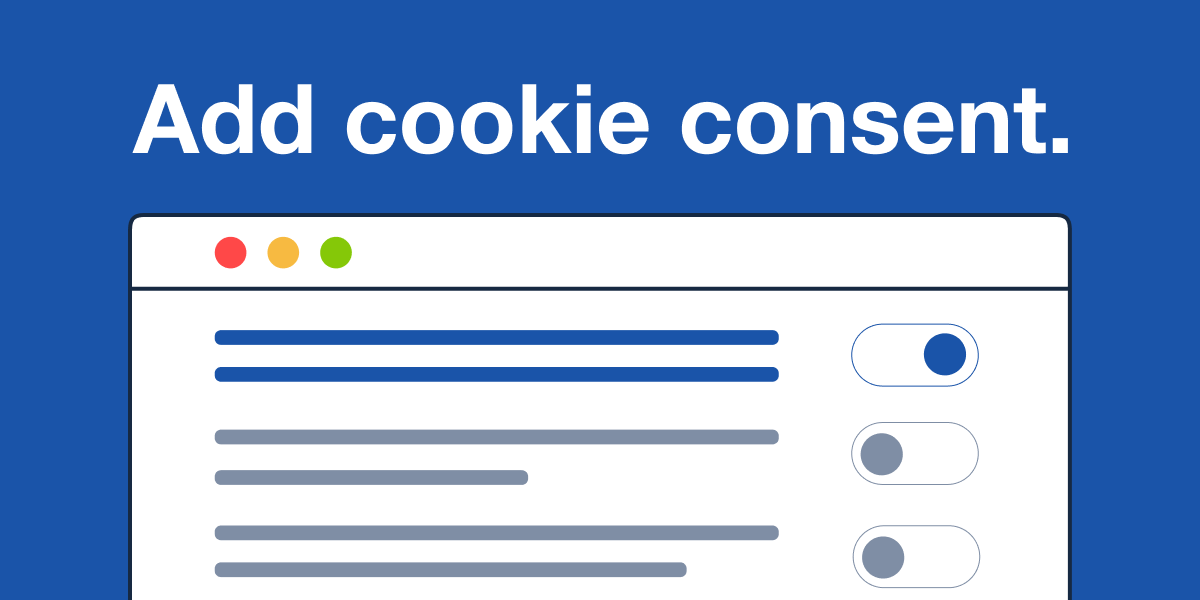 Cookie Consent. Manage vendors scripts you use (i.e. Google Analytics) and get user consent before scripts are loaded. Use this Kit and show a notice banner to visitors and get consent from users with ”I Agree” and ”I Decline” buttons.