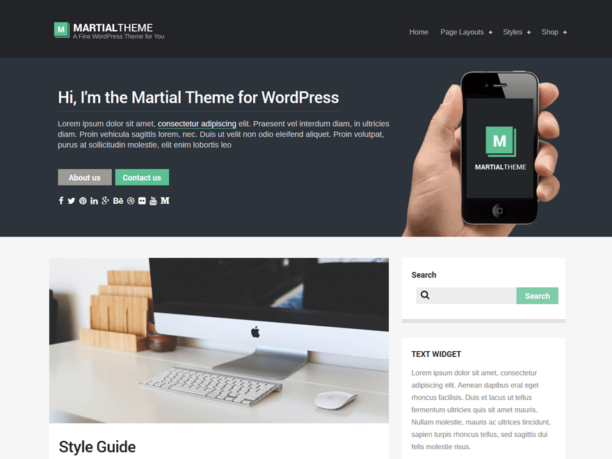 Martial is modern looking theme for bloggers, writers, photographers and other content creators looking for a traditional blog layout. Martial has some neat features such as hero header area which you can fill out with with an introduction about yourself and upload a background image, the image can be overlaid with color or blurred, all from the Customizer. Compatible with Contact Form7, Gravity Forms, WooCommerce and other popular plugins. Visit http://themefurnace.com to upgrade to pro version with extra widgets, 20 more themes and customer support.