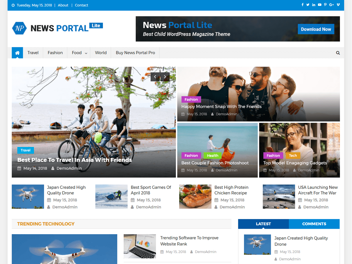News Portal Lite is child theme of News Portal ultimate magazine theme. News Portal Lite theme is best choice to create a beautiful & powerful news/magazine/blog websites with ease. Demo here: https://demo.mysterythemes.com/news-portal-demos/