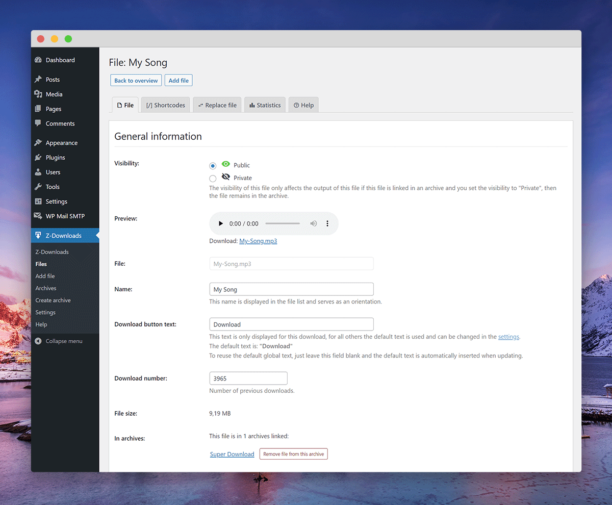 Z-Downloads makes file delivery simple: upload, place a shortcode, done. It automatically builds ZIP archives, keeps them updated when files change, and gives you clear stats and a clean UI.