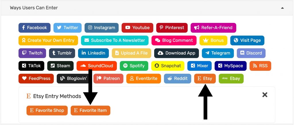 SweepWidget allows users to gain entries by selecting a favorite item on an Etsy shop.
