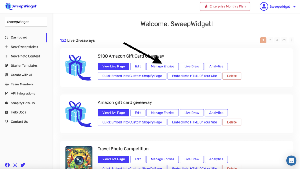 Require winners to have earned at least a certain number of entries. This ensures winners actively participated in your giveaway.
