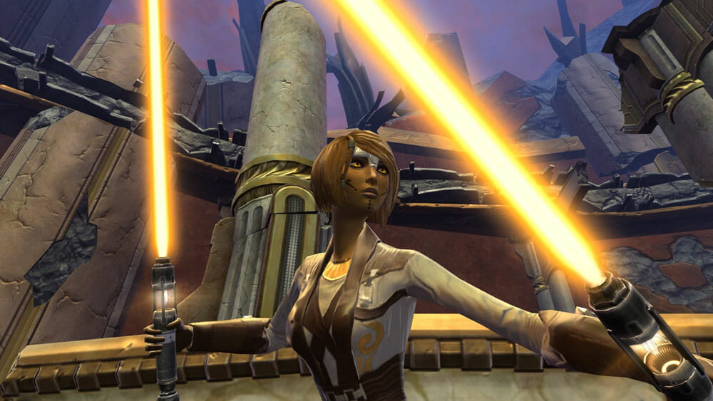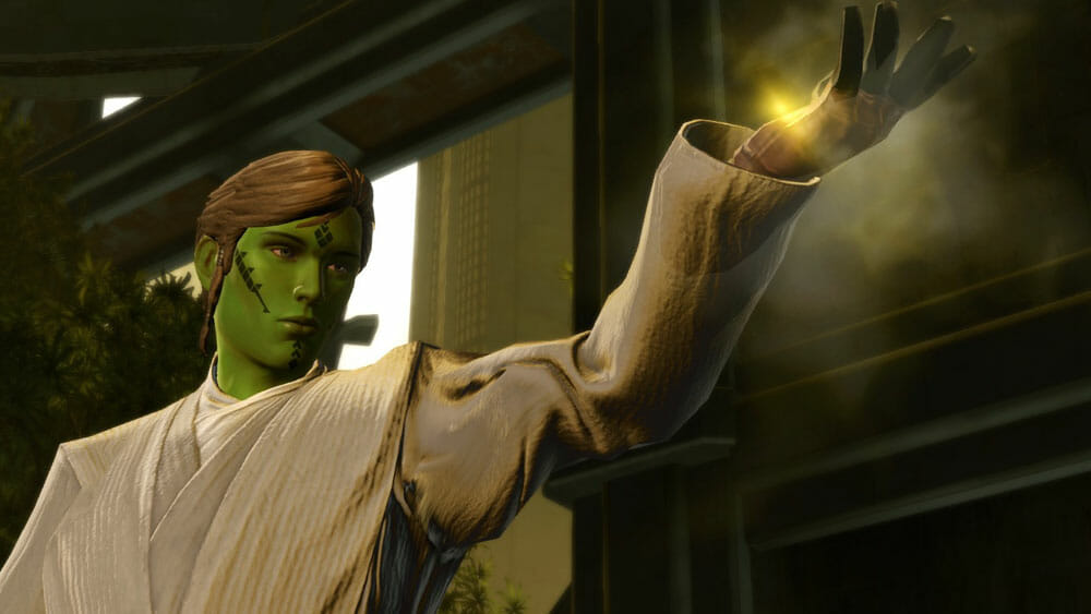 You can play any type of character as a Mirialan, as species are not restricted to certain Origin Stories or Combat Styles in Star Wars: The Old Republic.