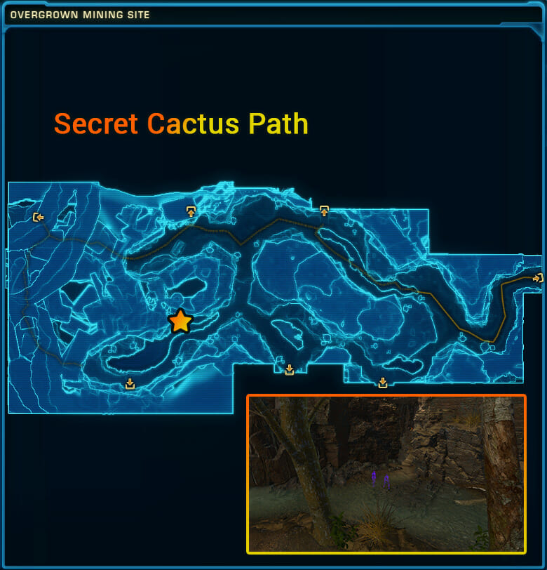 You will go to the “exploding cactus path,” a secret tunnel you can find on the Overgrown Mining Site map.