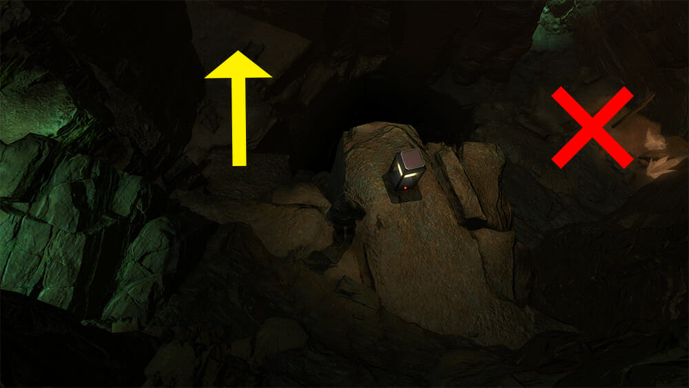 If you simply follow this path forward, you’ll reach a dead end with a rope, a backpack, a canteen and some notes. If you back-track, you’ll notice a, exploding cactus is hiding another tunnel behind it.