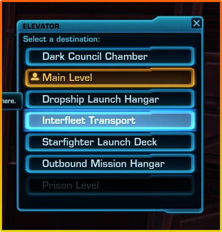 .. take the Taxi to the Gav Daragon. To get there, use the Elevator on the east side of the Republic Fleet to the Interfleet Transport level.