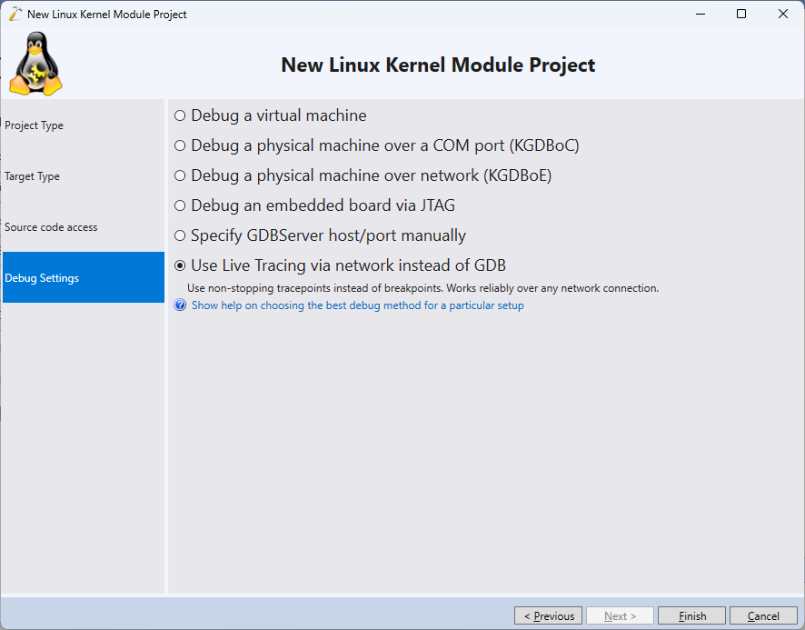 - The Debug Settings page of the wizard normally allows selecting a debug method (e.g. JTAG). However, starting from VisualKernel 4.1, you can also choose “Use Live Tracing” to completely bypass it and use a regular network connection instead: