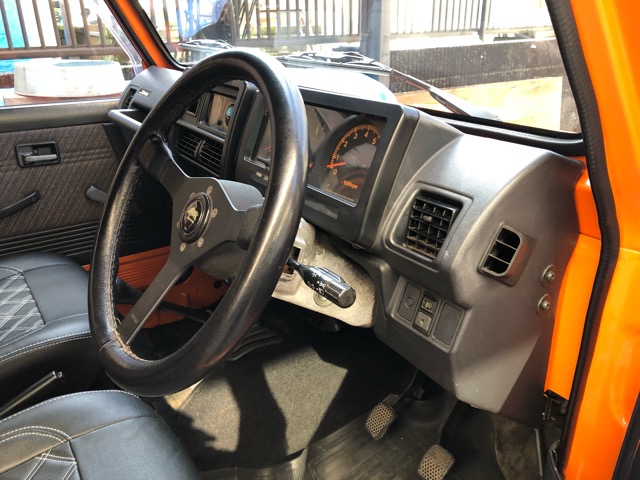 12月28日 朝から昨日納車されたジムニー、外装は綺麗なのですけど内装は傷んでいますので現状をチェックしていきます。ハンドルコラムはボロボロで風化して粉を吹いていますここは部品を探しますハンドルは純正のモモだけどコレも縫い目の糸が傷んでいますそういえば昨日納車の時に敷いてた足元の紙マット車体の色と合ってて可愛かったので貰って帰りましたが使い道は無い…センターパネルもなかなかヤれてて左上の小物入れなんて...