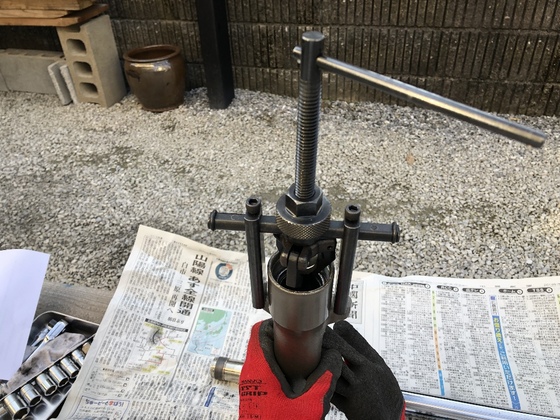 仕方なくベアリングプーラーで抜き取った