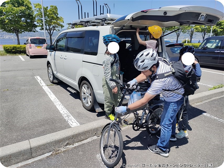 今日はサイクリングをしにデリカ2台で諏訪湖へお出かけです。